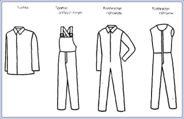 Rys. Przykłady wzorów odzieży ochronnej stosowanej przy zagrożeniu wplataniem w ruchome części