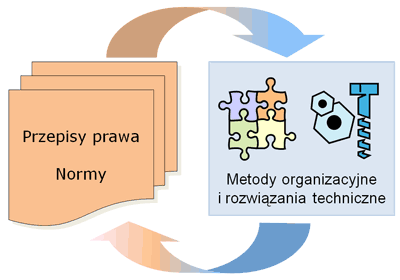 Rys.1. Powiązanie pomiędzy rozwiązaniami prawnymi oraz technicznymi i organizacyjnymi metodami zwalczania hałasu.