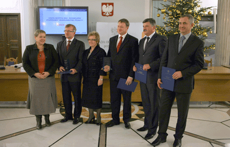 Fot. (od lewej): G. Bednarczyk, Samodzielny Publiczny ZOZ w Mazowie Maz. (Złota Karta Lidera); S. Gawiński, Kraft Foods Polska Confectionery Production Sp. z o.o. (Złota Karta Lidera); K. Knapczyk, Fiat Auto Poland S.A. (Złota Karta Lidera); J. Śliwa, Centralna stacja Ratownictwa Górniczego S.A. (Złota Karta Lidera); T. Jóźwicki, Polimex-Mostostal S.A. (Srebrna Karta Lidera); A. Ciulak, PSI Spółdzielczy Producent Sprężyn (Zielona Karta Lidera); J. Prasałek, GDF SUEZ Energia Polska S.A. (Złota Karta Lidera); W. Chybiński, PGE GiEK S.A. Oddział Elektrownia Bełchatów (Złota Karta Lidera); W.M. Zawieska, CIOP-PIB